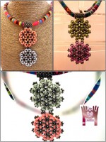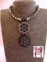 Collar con 2 Rosetones realizados con cristal checo (superduo, obeads) y rocalla 11/0 de cristal japonés (Miyuki). El cordón étnico e