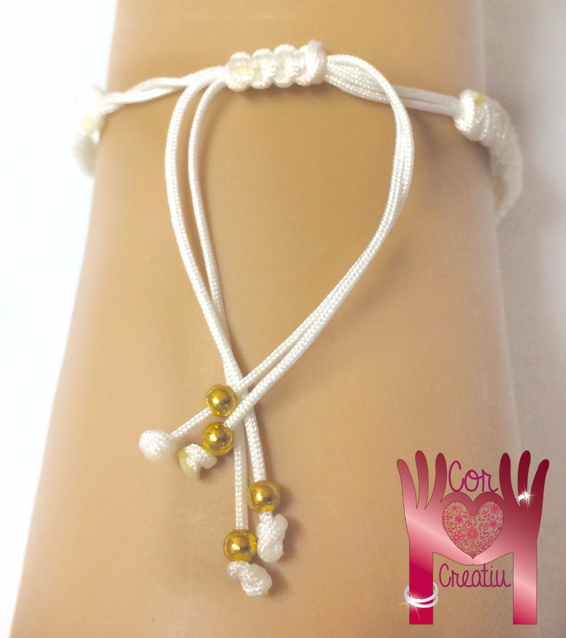 Pulsera de macramé con entrepieza de cristal japonés elaborada pieza a pieza, terminales en baño de plata dorados.
